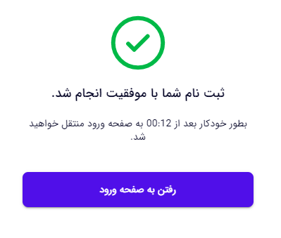 در صورت ورود کد صحیح، پیغام «ثبتنام شما با موفقیت انجام شد» را دریافت میکنید و میتوانید وارد پنل کاربری خود شوید.
